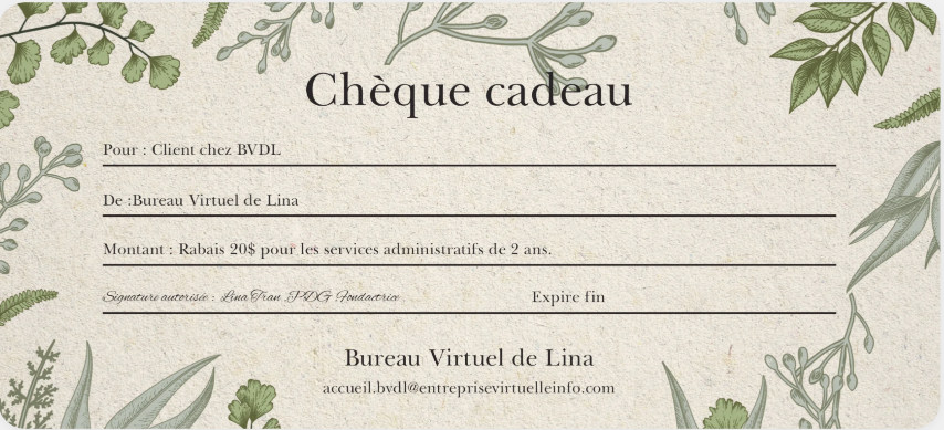 Ce rabais de 20$ sera appliqué pour les clients qui utilisent le service chez BVDL durant 2 années. Le rabais sera appliqué aussi.